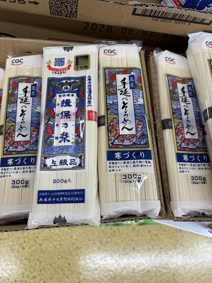 紺色の帯の揖保乃糸もスーパーで売ってるんだー。