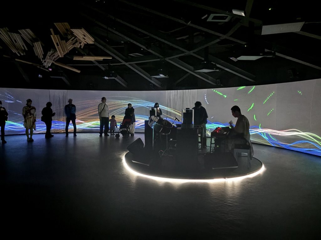 写真にある円形のスクリーンをぐるぐる回りながら皆で踊るパビリオン。