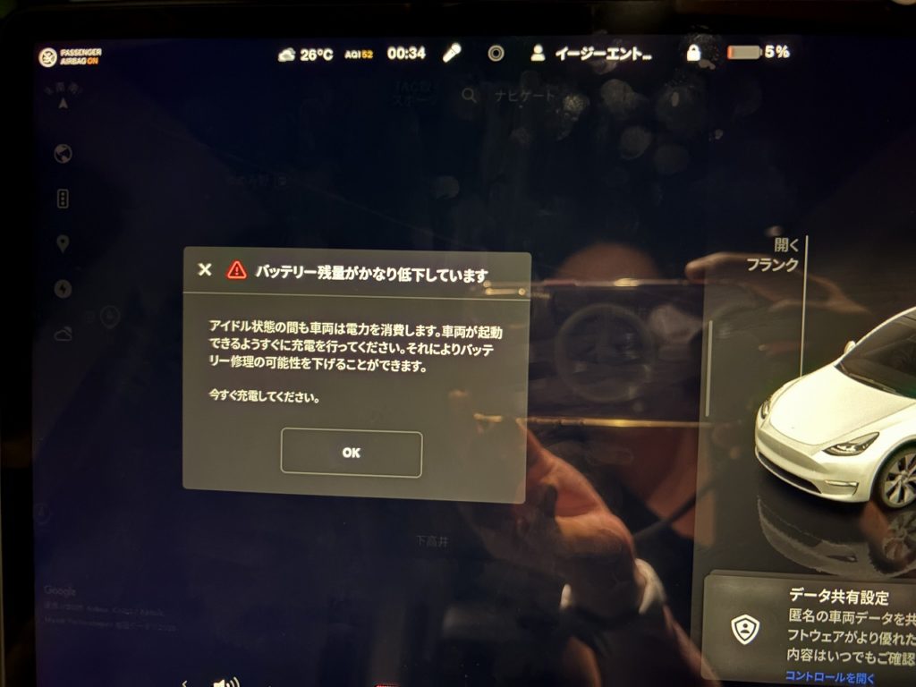バッテリー残り5%